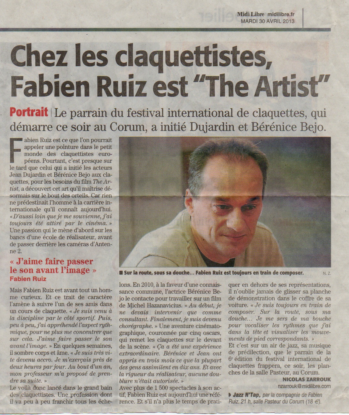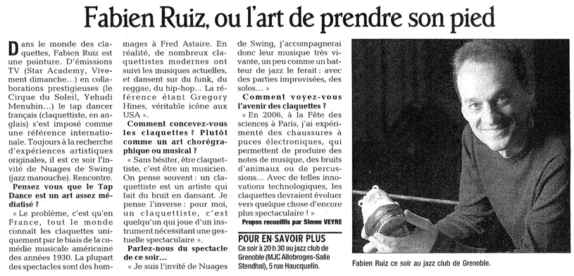 "Fabien Ruiz est un Tap-Dancer au jeu éblouissant. Il a les semelles qui chantent et qui improvisent."